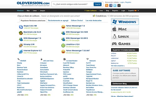 - OLDVERSION: es una página dedicada a rescatar del olvido viejas y antiguas versiones de software que muchas veces echamos de menos porque nos iban mejor que las actuales que usamos. Da servicio a distintas plataformas como Windows, Mac o Linux y cuenta con más de 690 programas. Busquéis lo que busquéis, aquí seguro que lo encontráis.