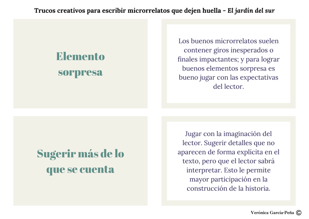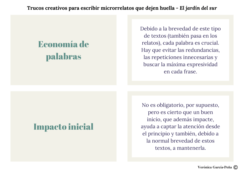 Los microrrelatos son una forma de expresión literaria que requiere precisión. Desde hace un tiempo, se han convertido en una parte esencial de este jardín y sé que os gustan. Lo veo en las estadísticas del portal y en los comentarios que recibo cada vez que comparto alguno, ya sea aquí, en las redes sociales o en otras páginas. Muchos de vosotros me habéis preguntado por algunas claves para escribir buenos y mejores microrrelatos. Por eso, a continuación comparto algunos consejos que a mí me han sido útiles y que suelo seguir con frecuencia para que mis microrrelatos (y relatos) dejen huella. Espero que os ayuden.